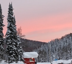 После парения мы окунулись в чан это отдельный вид блаженства , когда вокруг тебя лес окутанный в белое одеяло - просто завораживает .