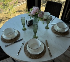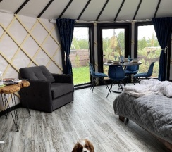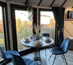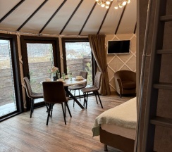 Все очень понравилось! Дом -юрта оч просторный, оч теплый, есть своя терраса, территория возле дома огорожена забором, есть хорошая мангальная зона, горячая купель! Внутри домика все предусмотрено для готовки и сервировки стола.