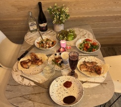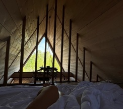 Отдыхали с супругом в домике "Романтика". Прекрасная локация для уединения и проведения отдыха вдвоем. На территории продумано все до мелочей, чтоб Вы смогли насладиться друг другом 🤗 Посуда, халаты, пледы, тапочки, ванные принадлежности все уже есть. Купель под открытым небом, проектор для просмотра фильмов, костровая чаша, красивая качель, мангальная зона, веранда с мебелью 👍🏻 Отдельная благодарность персоналу и администратору Александру. Все очень трепетно относятся с гостям. Атмосфера полного комфорта и доверия❤️ Мы остались в восторге 😊 Спасибо за сердечный прием 🥰