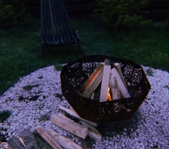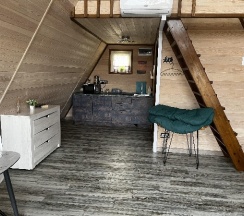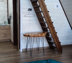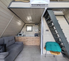 Домик стоит отдельно от других домиков , есть мангальная зона , качеля , костровая чаша , в домик вай-фай , холодильник , чайник , всё что нужно для проживания