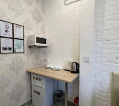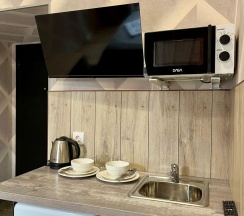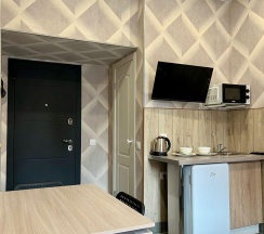 В апартаментах есть всё необходимое для комфортного проживания: двуспальная кровать, ТВ, а также мини кухня со всем необходимым : микроволновая печь, мини-холодильник, чайник, посуда. Бесплатный WI-FI, встроенный фен, собственный сан.узел.