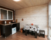 Были здесь три дня с 06.03. Заселение безконтактное, владелец дома всё подробно рассказал и объяснил, проблем не было никаких. Дом на два номера. Довольно просторно, есть кухня на веранде со всем необходимым для приготовления еды. Есть тарелки, столовые приборы, сковорода, кастрюли, печь индукционная, чайник, чай, сахар. В комнате есть шкаф для вещей, двуспальная кровать и двуспальный диван. Ванная комната тоже просторная, душевая кабина, бойлер, мыло, шампунь, гель для душа, одноразовые тапочки, фен, полотенца. В доме очень тепло, много разеток, на веранде спокойно пили чай в одних футболках, когда на улице был откровенный дубак. Рядом есть кафе, чуть подальше магазины. Место уединенное, спокойное. Минусы(лично для меня) - очень скрипучая кровать, без тапочек холодно ходить на веранде, не хватает очень микроволновки, территория вокруг домика весьма унылая, требует вложений. Ещё очень не хватает каких-нибудь рулонных штор на веранде- вечером чувствуешь себя как в аквариуме, а утром солнце светит прямо в лицо. Несмотря на все недочёты, однозначно рекомендую остановиться здесь.