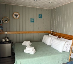 Номера очень уютные, обстановка радует глаз. Опять же, есть всë необходимое (холодильник, чайник, посуда и все туалетные принадлежности) Находясь на базе, вы не нуждаетесь ни в чем. А если возникают вопросы, обратитесь к персоналу, Вам обязательно помогут.