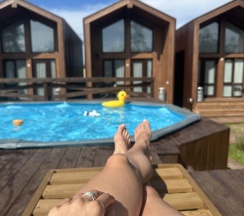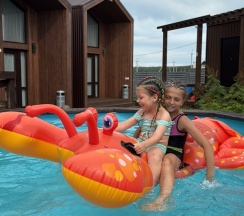 Идеальный вариант отдыха для семей с детьми. Мы специально искали жильё с бассейном, но нашли гораздо большее: детская площадка, купольная беседка с грилем , где есть места отдыха и столы, для детей есть игрушки на территории , в бассейне круги и водные пистолеты, лежаки. Ухоженная территория, красивая, уютная. Домик чистый, все новое, приятное. Мы отмечаем только плюсы. В таком месте и правда отдыхаешь !