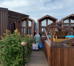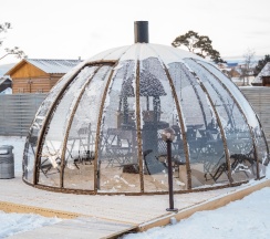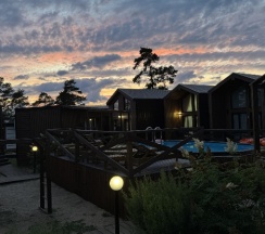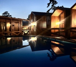 Отличный отель, все чисто, уютно, есть бассейн, баня и место для посиделок в купольном прозрачном домике, кафе местное, все красиво и вкусно.