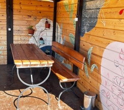 Жили большой компанией, понравились интерьеры внутри домиков, мы брали благоустроенные с санузлом и душем, но есть пожелания. Территория не ухоженная, беседка грязная, в беседке надо бы добавить раковину, не удобно бегать с посудой, за порядком не внимательно следят. Персонал отзывчивый, завтраки вкусные (по-домашнему)