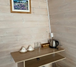 Понравилось: Новый, уютный домик. Комната на втором этаже. Санузел с душевой кабиной полотенца. В комнате холодильник, чайник, чашки, ложки.