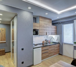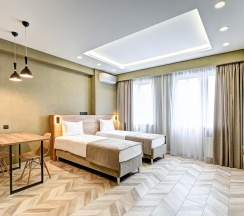 Современные и уютные апартаменты-студио с двумя раздельными кроватями, оформленные в стиле лофт, рассчитаны на двух гостей. Площадь 30 кв.м.