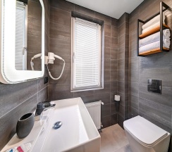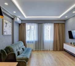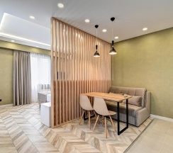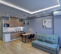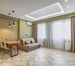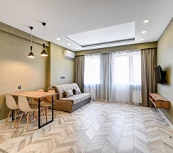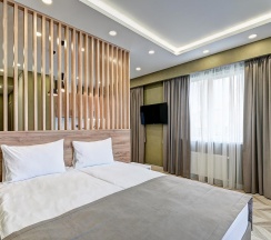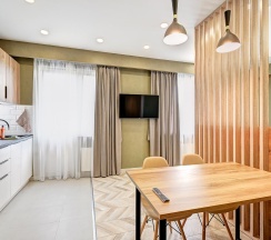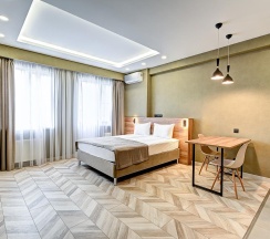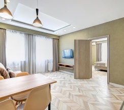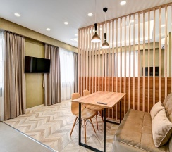 Просторно, светло и идеально чисто. Комфортные апартаменты для проживания, в том числе длительного. Приятный и улыбчивый персонал. Предоставляется все необходимое, ежедневный клининг.
