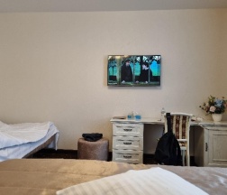 Понравилось: Проживали в отеле на Рождество 9 чел., занимали 4 номера разной категории. НОВЫЙ отель на 8 номеров. Просторные светлые комнаты, уютно обставлены, с ковролином на полу. В некоторых номерах в качестве дополнительного места - двухспальный диван. Кровати удобные, постельное белье и полотенца белоснежные. Ванные комнаты большие, сантехника вся новая и отлично работает, укомплектованы феном. В номерах есть чайник, чайная пара, чай, кофе, шоколадки, салфетки, тапочки одноразовые. В отеле имеется для общего пользования полноценная кухня с микроволновой печью и холодильником. А также за 300 руб. предоставляется завтрак на выбор с чаем и кофе из кофемашины.