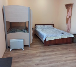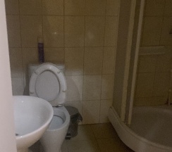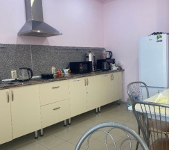 В номере душевая и туалет, кухня общая, есть плита, холодильник, микроволновка.