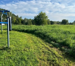 Со стороны террасы Барнхауса классный газон, все бегали босые по нему, шезлонги, скамейки и удобная мангальные зоны.