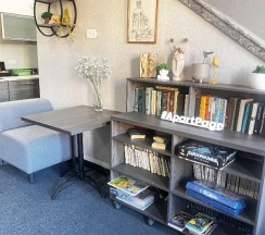 На 4 этаже есть общая зона, там есть кулер с водой, чайная зона, зона отдыха с книжками, там же гладильная доска и утюг