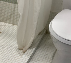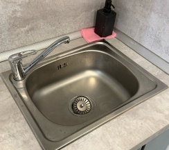 Не хватает крючка для полотенца у раковины. Сама раковина неудобно задвинута в угол.