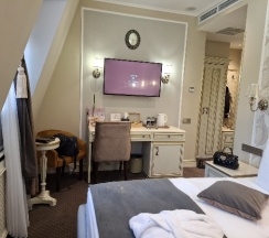 Прекрасный уютный отель в центре. Красивые интерьеры. Маленький, но компактно оборудованный всем необходимым номер - удобная кровать (мне это важно), халат, тапочки, чайный набор, полный комплект туалетных принадлежностей. Душевное отношение на ресепшен при регистрации - уточнили про бронь ужина и время, до которого будет работать ресторан, при этом позвонили в номер и сказали, что ждут до 21.00. Есть небольшой спортзал на -1 этаже. Завтраки вкусные, особенно отмечу сырники- просто волшебные!