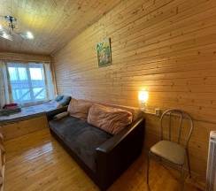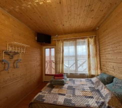 Комната на 2-4 человека. Находится на 2 этаже. Отдельный вход с улицы, персональный душ и туалет, панорамные окна с видом на озеро. В комнате душ, теплый пол, туалет, спальня с двуспальной кроватью и диваном-кроватью, телевизор, микроволновка, холодильник, чайник, электроплита и посуда.