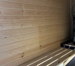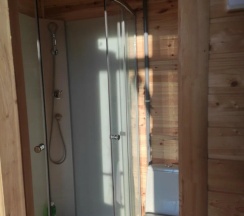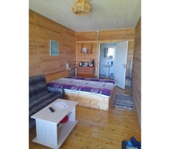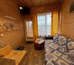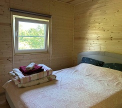 Двухкомнатный домик с террасой на 2-4 человека. Внутри домика своя собственная сауна на дровах. Вторая береговая линия. До домика асфальтированная дорога.