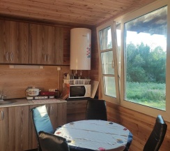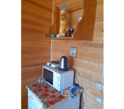 В домике есть все необходимое: кухня, телевизор, холодильник, стиральная машина, кухонные принадлежности, плитка, гейзерная кофеварка, чайник, посуда, микроволновка, барбекю(мини-гриль), отопление, постельное белье.