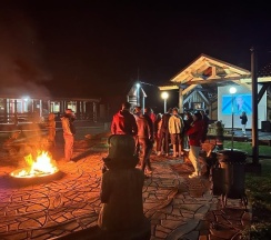Вечером дискотека, костер для всех в центре базы.Для тех кто не устал после танцев, просмотр фильма.