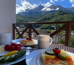 Комфортабельные апартаменты, в которых предусмотрено все для гостей: удобные кровати, идеальная чистота, кухонный уголок, полный набор посуды и балконы с потрясающими видами на горы!