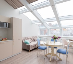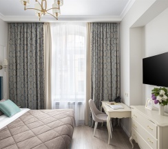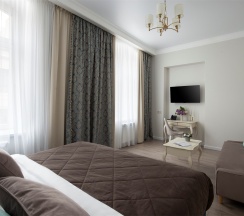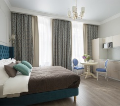 Комфортный и современный отель, расположенный в уникальном петербургском особняке. В отеле представлены номера и сьюты, оснащенные по последнему слову техники, включающие в себя изолированные спальни, оборудованные кухни-гостиные и просторные ванные комнаты.