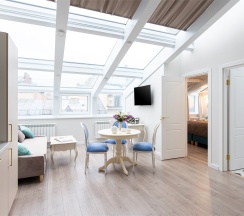 Однокомнатный номер-студия с собственной полноценной кухней и ванной комнатой