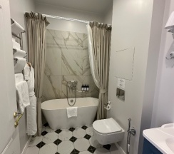 Номер был безупречно чистым, современным и уютным. Удобная кровать с качественным бельем, хорошая звукоизоляция (что очень важно в центре города!), мощный душ, все необходимые туалетные принадлежности. Приятные мелочи: чайник с чаем/кофе, хороший Wi-Fi, сейф, просторный шкаф.