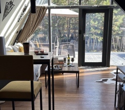 Полный восторг. Очень стильные домики. Отличное сочетание ванны и камина, для приятного вечера. А просыпаться с видом на лес отдельное удовольствие! Администратору отдельное спасибо!