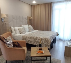 Совершенно замечательный отель! Новый, уютный, с красивыми номерами, где есть все необходимое. Кровать большая и удобная, сантехника хорошая, пол в ванной тёплый, халаты, тапочки, милые балкончики.