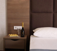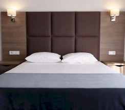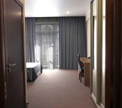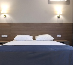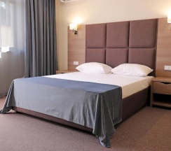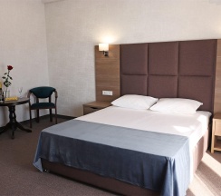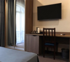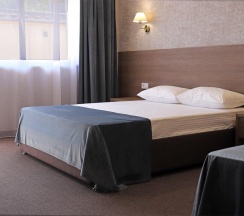 Просторный номер с современным интерьером для размещения одного, двух или трех человек. Возможна установка одного дополнительного места. Площадь номера 24 м2. В комнате одна двуспальная и одна односпальная кровать или три односпальные кровати, прикроватные тумбочки, письменный стол, чайник и набор посуды, стулья, мини-холодильник, телефон, телевизор, шкаф-купе.
