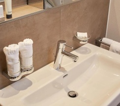 В ванной комнате: фен, душевая кабина, туалет, бесплатные гигиенические принадлежности: мыло, шампунь, гель для душа, комплект полотенец. Номер оборудован кондиционером. Бесплатный Wi-Fi в номере и на всей территории. Утюг с гладильной доской – на каждом этаже.