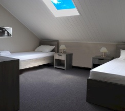Номер увеличенной площади на мансарде для размещения одного или двух человек. Возможна установка одного дополнительного места. Площадь номера 23 м2 В комнате одна большая или две отдельный кровати, прикроватные тумбочки, письменный стол, чайник и набор посуды, стулья, мини-холодильник, телефон, телевизор, шкаф-купе. В ванной комнате: фен, душевая кабина, туалет, бесплатные гигиенические принадлежности: мыло, шампунь, гель для душа, комплект полотенец. Номер оборудован кондиционером. Бесплатный Wi-Fi в номере и на всей территории. Утюг с гладильной доской – на каждом этаже.