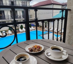 Были в период с 4 по 12 октября, милый отельчик в мин10 от моря, идеальная чистота везде от номеров до бассейна, приятные девушки на ресепш, тёплый бассейн,на территории есть зона барбекю, завтраки в кафе внизу на любой вкус,