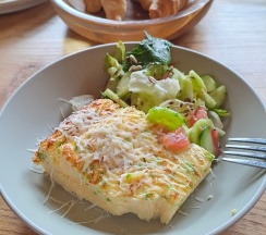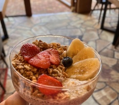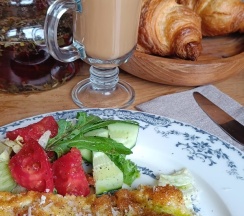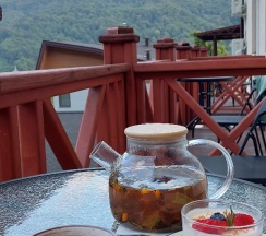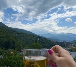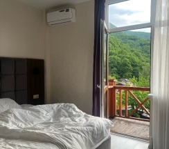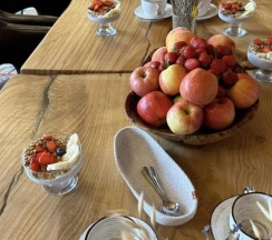 Очень вкусный , сытный завтрак . Удобное расположение , нет шума от машин , красивые виды на горы , магазины, кафе , остановки на общественный транспорт все рядом , в пешей доступности . Спасибо за отдых !