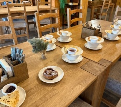 На территории есть ресторан, блюда все вкусные, завтраки сытные , не скажу что меню завтрака сильно разнообразное, но если останавливаетесь ненадолго - то в самый раз
