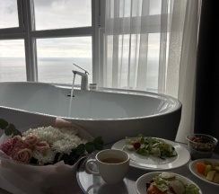 Проживали в отеле в январе 2025 года. Выбирали номер с видом на море. Заселившись в номер были в полном восторге!!! Номер превзошел все ожидания!!! Большой просторный с огромной кроватью и со всем необходимым для проживания!!! Вид из окна - просто великолепен!!! Закаты, рассветы, море!!! На завтраки было предложено 5-7 разных вариантов. Пробовали разные каждый день! Персонал отзывчивый и высоко клиентоореинтированный! Все наши обращения не остались без внимания ! Особенная благодарность работнику отеля Инге! Добрый чуткий человек. Подсказала много о проведении досуга и питания в городе. Чистота, порядок и уборка каждый день. В номере вода, кофемашина, чай, микроволновка, чайник. Просторная душевая кабина, шампунь, мыло, гель для душа, зубные щётки - всё есть. Много зеркал. Спасибо огромное за чудесные дни проведенные в Вашем отеле!!!