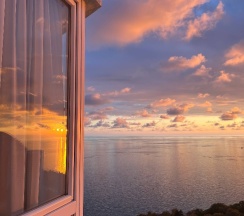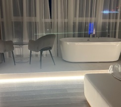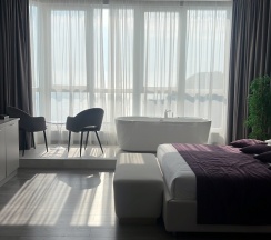 Это просто восторг. Апартаменты с видом на море♥️ зеркала вокруг кровати. Атмосфера романтичная и будоражащая.