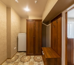 В номере чисто,есть балкон,горячая вода,холодильник.