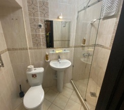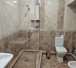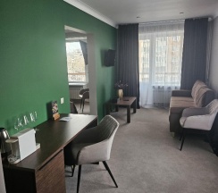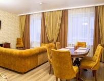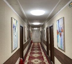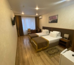 Шикарный номер, для двоих не хватает только холодильника в номере. В номеры был чайник, фен, кофемашина без капсул. Убирались каждый день. Чай в пакетиках можно обновлять каждый день, специально купил коробку и оставил другим гостям. Купил еще солфетки бумажные тоже для следущих гостей. Зубная щетка и паста - каждый день меняли. Мусорка электроная крышка. Первый раз видел номер с тремя балконами. Да, есть небольшой фоновый шум с улицы, когда большое движение на улице, но не ночью. Можно убрать доп.изоляцией на дверях балкона и окнах, мне не мешал. ХОРОШиЙ ДУШ С НОРМАЛЬНОЙ Горячей ВОДОЙ. Был в огромных отелях с огромной высотой, не всегда хватало горячей воды в вечерний пик. Может кому это важно. В спальне огромный телевизор, в зале второй поменьше. Администрация всегда готова помочь, есть скидки при аплате авансом. Ранее заселение и возможность оставить вещи при выселении. Завтраки с 8.30 вкусно готовят. На 1 этаже есть шикарный ресторан с блюдами от 2к, хороший выбор, но заказывайте в номер через админа,тогда будет скидка 20%. Очень доволен номером остался. Да гостиница в бизнес центре, 4 этаж. Лифт есть. Столовая на минус 1 этаже.