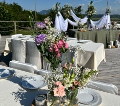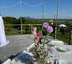 Красивое место , оформляли здесь свадьбу , красивый вид на горы и поля , глаз отдыхает от города . Дорога в целом хорошая , где-то совсем возле есть без асфальта , но ровная .