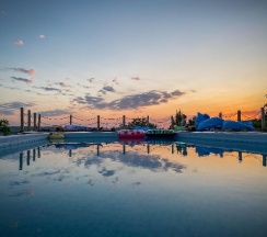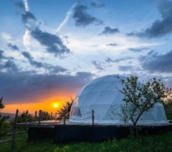 На территории глемпинга есть бассейн, баня, ресторан, поле для мини гольфа ,детская площадка и даже лавандоврое поле.