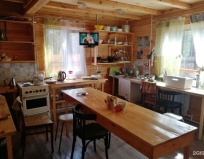 Замечательное место для отдыха! В комнате чисто, просторно, уютно. Весь дом сделан в дереве, очень атмосферно, душевые и санузлы прекрасные, на всех хватает. Очень уютная кухня с большим столом и разнообразием посуды, что позволяет готовить и кушать одновременно нескольким гостям, где и происходили знакомства и приятные беседы. Большой двор, есть мангальная зона, для деток, много лавочек, большая веранда. Хозяева очень гостеприимные, отзывчивые, мы были первый раз, они нам все показали, объяснили, куда сходить. Рекомендую это место!