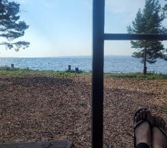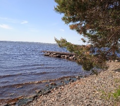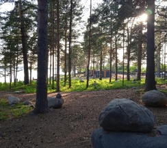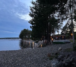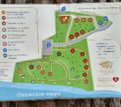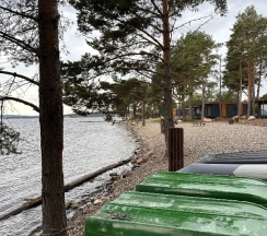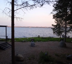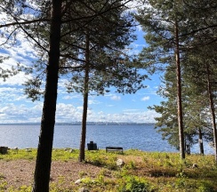 Невероятно красиво и надёжно упрятан среди приозёрного поселения туристический центр с парой десятков бунгало, красивейшим видом на озеро в обрамлении двух каменистых кос, играющих волнами Онего.