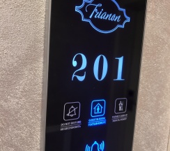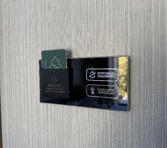 Вместо ключей сейчас используют карточки и в этом отеле не нужно вешать дорхенгер (эта такая табличка 'не беспокоить', 'убраться в номере') вместо этого сенсорное табло на стене.