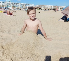 Пляж чистый, песок воздушный, море тёплое и прозрачное.