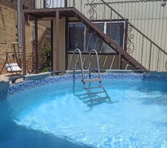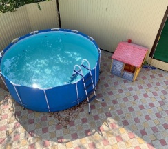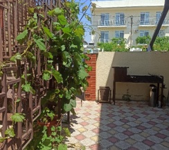 Понравилось: Гостеприимные хозяева, очень уютный чистый номер. Номер был снят на четверых. 2 взрослых и 2 детей. В номере 2 мягких односпальных кровати со свежим постельным бельём, одна шикарная двуспальная (огроооомная 2^2) кровать. Всем предоставляют банные х/б махровые полотенца (не синтетический Китай, для меня это очень важно!). Кухонный уголок в номере обустроен всем необходимым: посуда, чайник, газовая плита. В санузле, который был тоже в номере, все очень чистое, исправное, есть туалетная бумага. Также в номере есть холодильник, телевизор, и кондиционер. Во дворе для ребятишек стоит батут, каркасный бассейн. Есть специально отведённое место для курения. Общая кухня хорошо оборудована всем необходимым. Можно позавтракать с 8 до 9: чай, кофе, молоко, сухие завтраки, хлеб для тостов, сливочное масло, разные виды печенья - это все входит в стоимость проживания.
