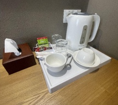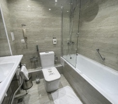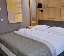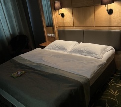Замечательный уютный номер, в котором есть всё(большая кровать с белоснежной постелью, тумбочки, стол для работы, телевизор, фен, все туалетные принадлежности и для душа, чайник, чай, кофе, холодильник, даже гладильная доска, сейф). Чисто, уютно, классный дизайн, ванная(не душевая кабина👍).