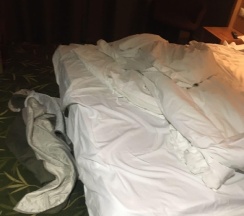 Большая удобная кровать с которойпррсто не хотелось вставать. Чистое, целое, наглаженое, хлопковое, белоснежное постельное белье и полотенца.