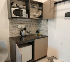 Фото и перечень того что есть в номере, полностью совпадает. Мы целыми днями гуляли а вечером приходили, готовили еду . Плита и посуда всё есть.