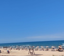 Новые комфортабельные двухэтажные домики со всем необходимым: техника , мебель . Чистый пляж, вход в море плавный , песок . Зонтики (с датчиками движения в ночное время) , лежаки . Мангал во дворе . Находится в 1 км от центрального пляжа , где есть все развлечения , кафе и тд . Хочу особо отметить хозяина Муслима ! Очень отзывчивый, гостеприимный человек - реагировал на наши просьбы очень быстро . Если вы хотите семейный спокойный отдых вам туда .